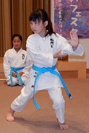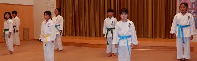 | 8月27日(日)、第10回・子どもまあるいフェスタが行われました。 これは子どもに関わる団体の発表会で、太鼓や合唱、ダンスなど様々な団体が各15分程度の時間で発表していくものです。 今年は8団体の参加となっていました。 今年も主催の団体からお声をかけていただき3回目の参加です。地域と関わり合いを持ちながら活動できる事を嬉しく思います。 会場が狭いので、小学生数名による発表となりましたが、みんな大きな気合を入れ発表する事ができました。 空手の発表の締めでは、ダンスのチームも飛び入り参加で、四股立ち正拳突き10本。 みんなで元気よく行えました。例年に比べ、今回のフェスタは出演者と観客が一緒に盛り上がる場面が多かったと思います。 とても楽しい雰囲気の中、みんな頑張って発表する事ができました。(^^) |