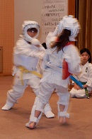 | 9月30日(土)、第5回・印西支部発表会を行いました。 会場である福祉センターの「ふくしまつり」の中で、いくつかの催し物の一つとして行いました。 ただ、今年は例年より1ヵ月も早い開催となり、練習期間も少ない中でやっと覚えたばかりの内容を発表する状況となりました。 しかも印西市内の小学校の運動会と日程が重なり、何と2/3の生徒がお休みという事態に。(*_*; 更に自分が体調を崩し、師範演武はおろか、司会進行もできず補佐役に回りました。 そんな中、20名程の生徒での発表会となりましたが、みんな良く頑張りました。 覚えたての技ですから、上手に出来ない場面はたくさんありました。でも、この「頑張る」「一生懸命」が大切です。 これが出来れば、必ず技は上達し、人として成長するのですから。今後もいろんな事に挑戦し頑張っていきましょう!(^^) |