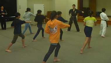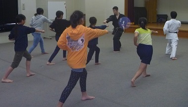 | 10月21日(土)、印西市立小林公民館の主催事業「ジュニア☆プレイス」で、空手を教えてきました。 この事業は、登録された小学生高学年を対象に、1年間を通して色々な事を体験してもらうというものです。この「色々」の中の一つとして空手を体験してもらおうと、その講師として自分が依頼を受けました。 全員が空手未経験。空手がどういう物か全くわからない子もいましたが、皆で大きな気合を入れながら練習しました。 子どもたちからは、「ストレス発散になった。」「技が難しかったけど楽しかった。」等の感想をもらい、良い体験になったようです。(^^) |