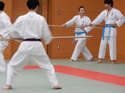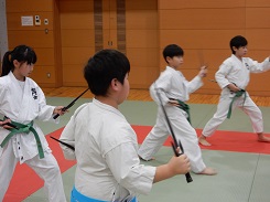 | 1月25日(土)~26(日)、松門会古武道合宿を開催しました。 40名程が参加し、棒・釵・ヌンチャク・手甲、トンファーの中から希望の武器術を学びました。 初めて習う型、初めて見る武器、初めて触る武器、どれも新鮮で参加者全員が楽しそうに集中して稽古に励んでおり、また、他の道場生と一緒になって頑張っている姿も印象的でした。 古武道だけを集中的に行う合宿として初めての試みでしたが「日頃の稽古では古武道をこんなにじっくり学ぶ時間がないので、この合宿はとても有意義だった。」とたくさんの喜びの声が聞けて、開催して良かったと感じる事ができました。とても充実した良い合宿になりました。運営陣の皆様、参加者の皆様ありがとうございました。 今後も継続した行事にしていきたいと思いますので、次回からの参加もよろしくお願いします。 皆様、お疲れ様でした。(^^) |