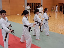 日頃の稽古は2~3時間ですが、合宿では6時間!全身筋肉痛となった生徒が何人もいました。^^; それだけ最後まで夢中になって稽古ができたという事ですね!(^_-)-☆ 「面白い!」とせっかく覚えた古武道ですから、忘れない様に繰り返し稽古し、上達するよう頑張りましょう! 少しずつできる事が増えると、もっともっと楽しく感じる事ができますよ! \(^o^)/ |